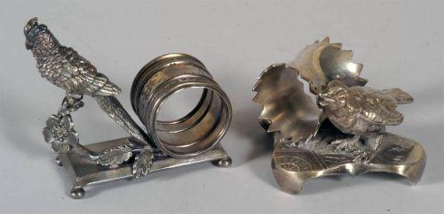 VICT SILVERPLATE NAPKIN RINGS Large Sparrow, Manhattan #311 together with Parrott, Meriden #299, CONDITION: one with roughness around ring edge. PACKING AND SHIPPING BY FAIRFIELD AUCTION WITHIN CONTINENTAL USA (excluding insurance) $20- we will discount for combined shipping on multiple lots,
