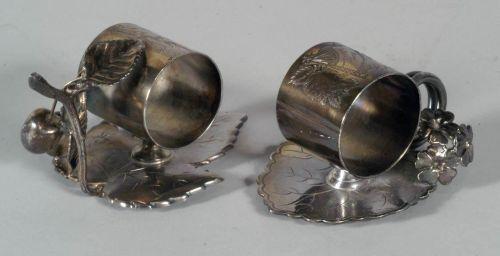 VICT SILVERPLATE NAPKIN RINGS Twig with two cherries, Hartford #290 together with Floral, Middletown #97, CONDITION: excellent, no damage or repairs. PACKING AND SHIPPING BY FAIRFIELD AUCTION WITHIN CONTINENTAL USA (excluding insurance) $20- we will discount for combined shipping on multiple lots,