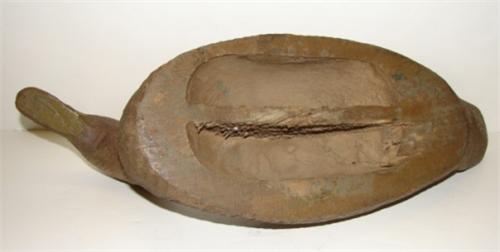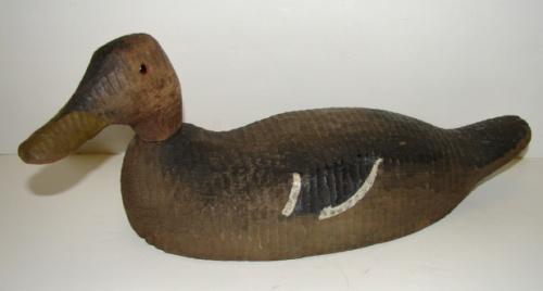 VICTOR BLACK DUCK HEN DECOY. Glass e. Removable head. Hollow bottom. Unsigned. Shows minor wear. 16” L
