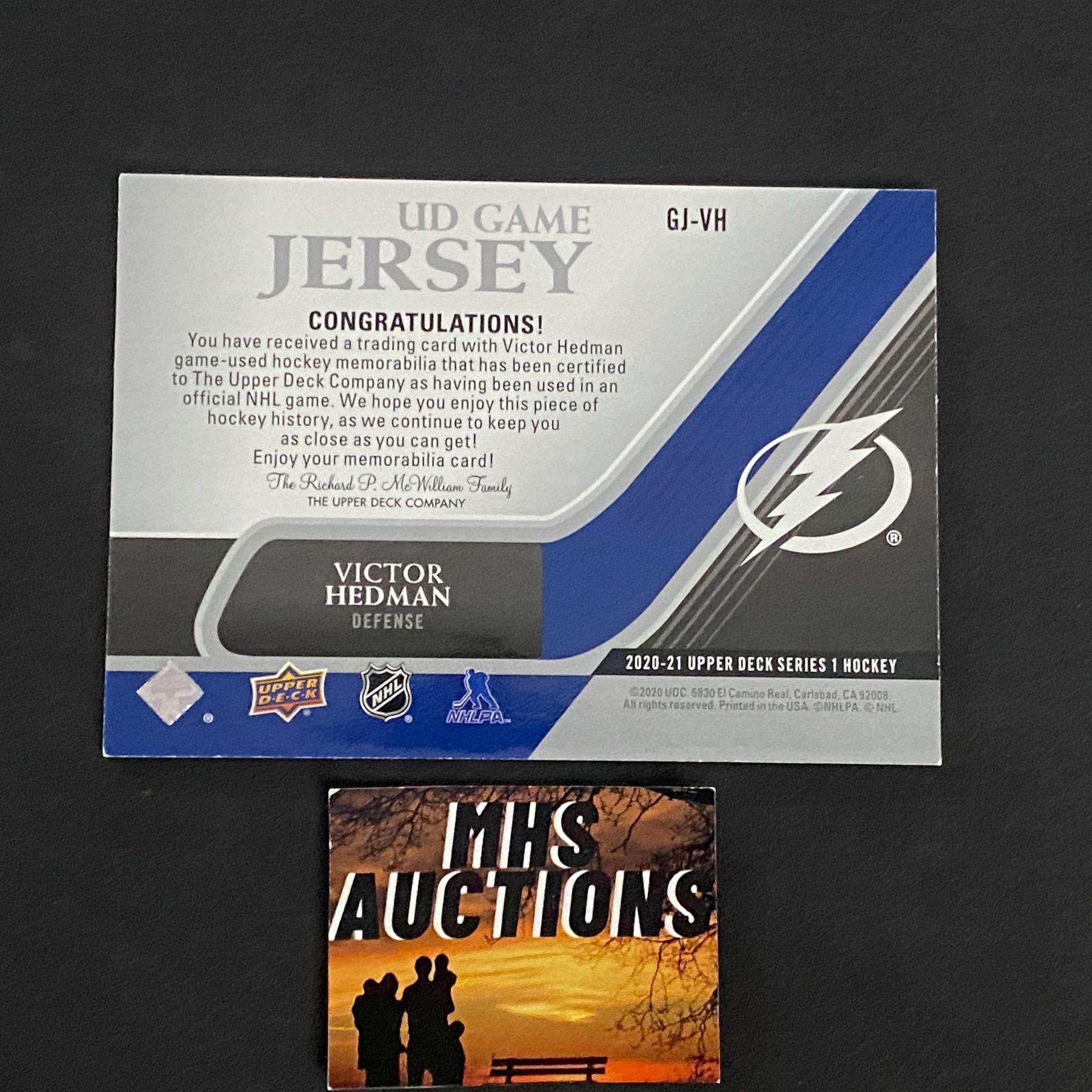 VICTOR HEDMAN 2020-21 U.D SERIES 1 JERSEY CARD