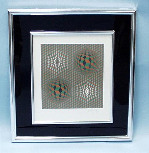 VICTOR VASARELY (1908-1997) Hungarian school. A limited edition coloured lithograph on embossed paper. Pencil signed and numbered 177/250, lower margin. 17" x 14 3/4". In metallic frame. Ref. Benezit, vol. 8, page 479.
