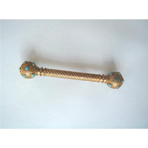 <tr><td>Title:VICTORIAN 14K GRANULATED BAR PIN w.TURQ.</td></tr>