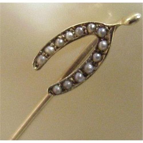BEAUTIFUL VICTORIAN ERA 14K GOLD STICK PIN, ENCRUSTED WITH PRECIOUS TINY SEED PEARLS.MEASURES ABOUT 2 1/2" LONG.