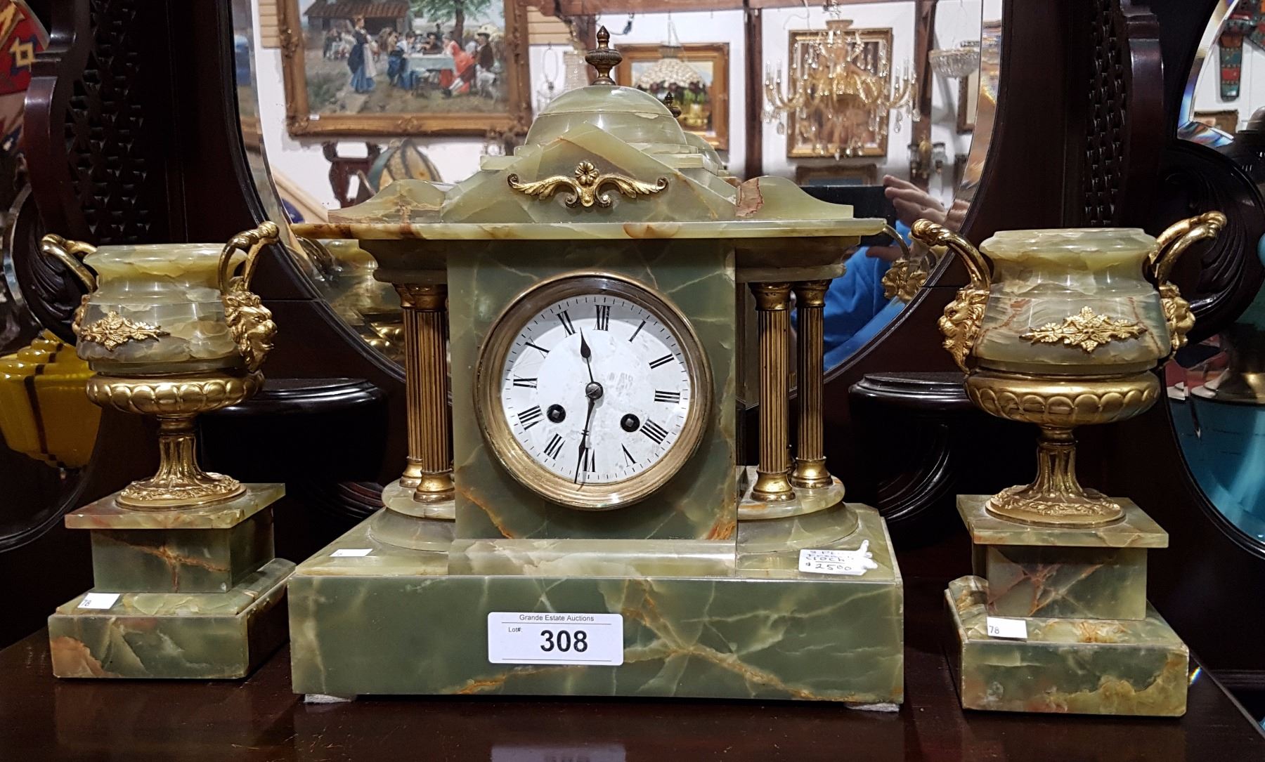 VICTORIAN 3PC FRENCH ONYX CLOCK SET