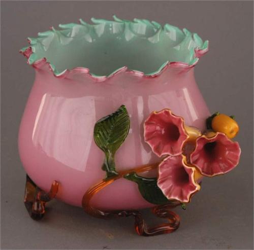 VICTORIAN ART GLASS BOWL with applied flowers 6 1/2" high late 19th century <BR>condition: small interior fracture to flower bud
