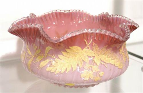 VICTORIAN ART GLASS LINER with gold enameled decoration, 10" diameter with 5" fitter, late 19th century, condition: excellent, PACKING AND SHIPPING (excluding insurance) $30,