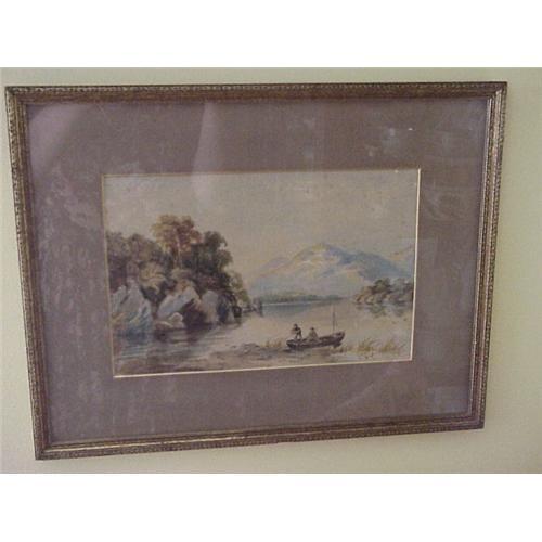 Beautiful late Victorian framed watercolor. The watercolor is most attractive and the artist was talented. The work is signed with the intials HG. Overall measurements are 18 inches by 14 inches, the watercolor itself is 11 1/2 inches by 8 inches, attractively framed in a period gilt wooden frame. The condition is very fine with some foxing. The picture is most attractive and would be a fine addition to your collection of antique watercolors and art.