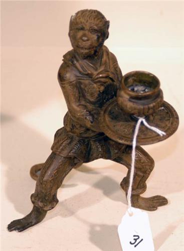 VICTORIAN BRONZE MONKEY CANDLESTICK <BR>condition: excellent