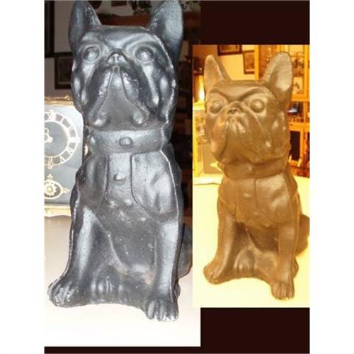 The detail on this adorable bulldog is just the greatest. He has this wonderful old buckle studded harness too. The height is 13 ½ and he weighs at least 30 pounds. He is made of concrete and is NOT a reproduction.
