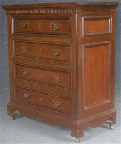 VICTORIAN CHERRY TALL CHEST with raised panel sides, original hardware, height: 46" width: 39 1/2", depth: 22"