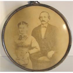 VICTORIAN STAND-UP CIRCULAR FRAME WITH PHOTO OF MAN & WOMAN. 6" Dia.