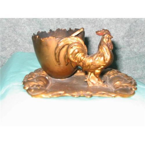 THIS IS A VERY CHARMING PIECE. FROM THE VICTORIAN PERIOD, IT HAS A WONDERFUL ROOSTER ON THE FRONT FOR DECORATION, AND A VERY ELABORATE DESIGN ON THE BASES BORDER. THE CUP THAT HOLDS THE MATCHES HAS A DELICATE DESIGN. THE MATCHES APPEAR TO BE THE ORIGINAL ONES. HAS BEEN TAKEN CARE OF ALL THESE YEARS, NO BENDING OR DINGS, IT IS IN LOVELY CONDITION.