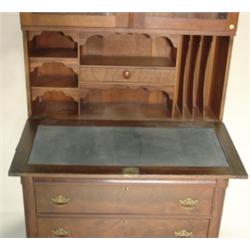 Victorian country burl walnut secretaire. Hardware is original. Has three drawers on bottom and two glass doors on top. 82" H, 40" W, 22" D