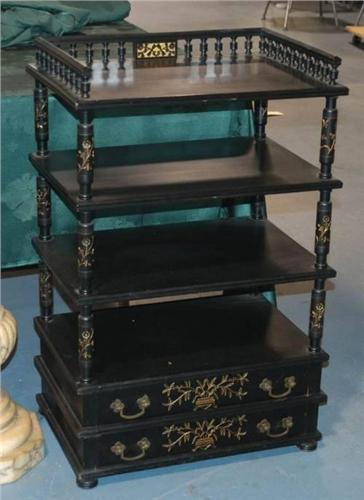 1 VICTORIAN EBONIZED CANTERBURY with drawer circa 1880, ex estimate 300-500