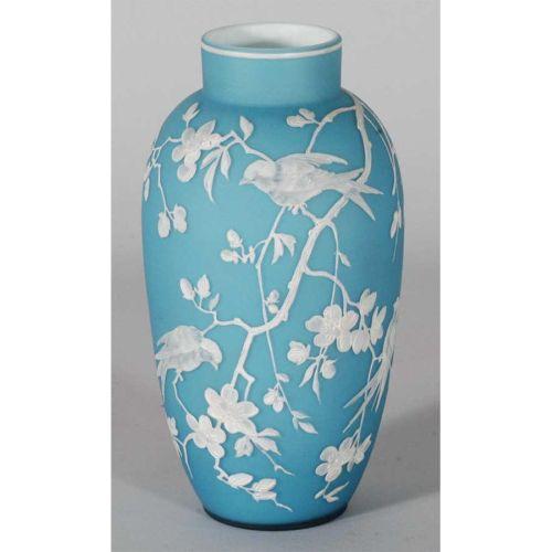 VICTORIAN ENAMELED SATIN GLASS VASE, 9" high, late 19th c., CONDITION: excellent, PACKING AND SHIPPING: Fairfield Auction will provide packing and shipping (excluding insurance) within the Continental U.S. for $30. Buyer is welcome to use any other service or pick-up at the gallery.