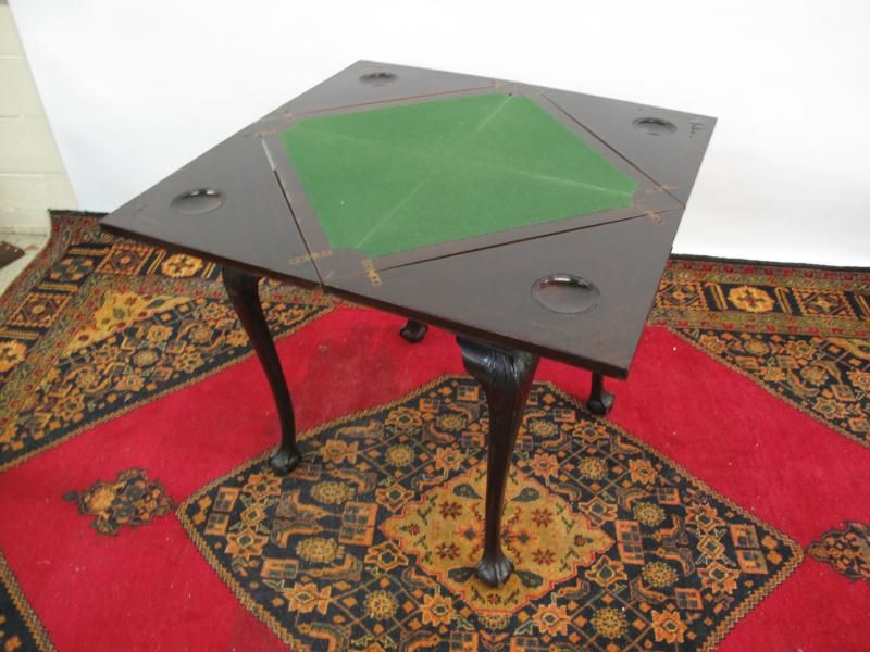 -Chippendale style, with green felt playing surface. Condition noted to veneer surface.
