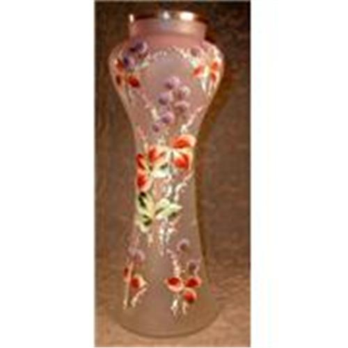 Beautiful tall antique Victorian enameled glass vase. Very light, frosted glass,