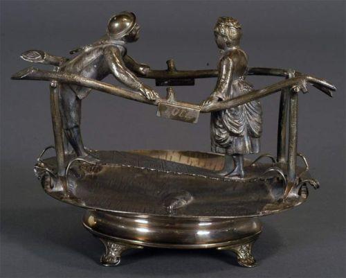 VICTORIAN FIGURAL CALLING CARD STAND, Toll bridge with boy & girl, 160 mm high, CONDITION REPORT: Excellent. PACKING AND SHIPPING excl. insurance w/i Contintental U.S. $30 excluding insurance within Continental U.S., multiple lots can be combined at a discount.