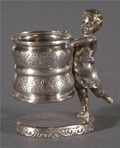 VICTORIAN FIGURAL NAPKIN RING Cupid holding ring on base, no maker's mark, 92mm high, CONDITION REPORT: Excellent. PACKING AND SHIPPING excl. insurance w/i Contintental U.S. $20 excluding insurance within Continental U.S., multiple lots can be combined at a discount.