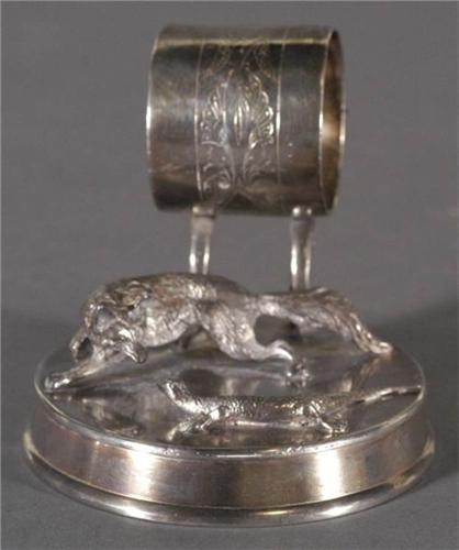 VICTORIAN FIGURAL NAPKIN RING Fox with lizard, Pairpoint #513, 87mm high, CONDITION REPORT: Excellent. PACKING AND SHIPPING excl. insurance w/i Contintental U.S. $20 excluding insurance within Continental U.S., multiple lots can be combined at a discount.