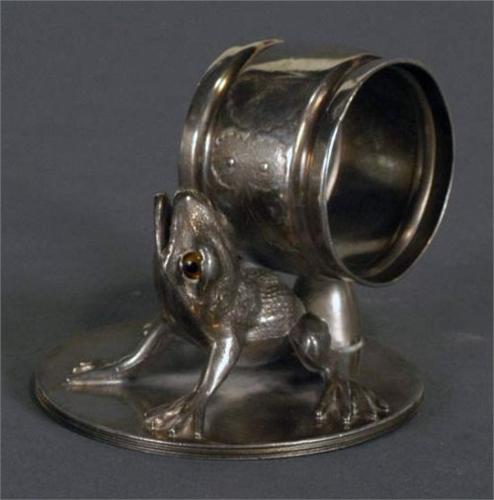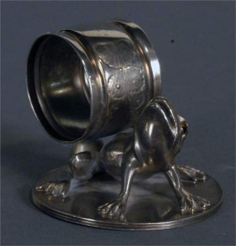 VICTORIAN FIGURAL NAPKIN RING Frog, Hartford Silver #763, 60mm high, CONDITION REPORT: Excellent. PACKING AND SHIPPING excl. insurance w/i Contintental U.S. $20 excluding insurance within Continental U.S., multiple lots can be combined at a discount.