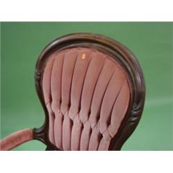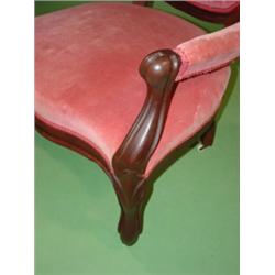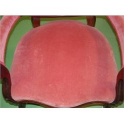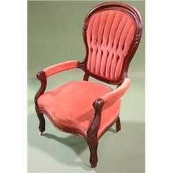 VICTORIAN WALNUT GENTLEMAN'S ARMCHAIR. Red/Pink upholstery. Good cond. 41.5"H, 25"W from arm to arm, 17" tall to the top of seat.