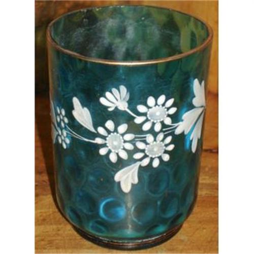 Victorian glass in turquoise glass in very good codition,enameled white flowers.