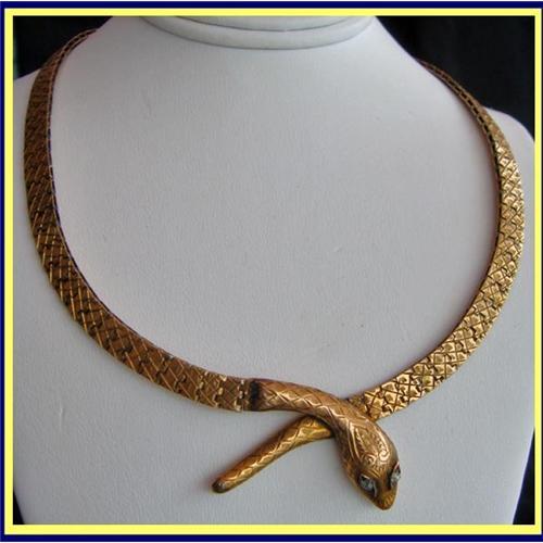 </font></strong>Victorian engraved gold and rose cut diamond choker necklace in the form of a snake. Exact origin unknown, possibly English or American. Circa 1850-80. <P><P>