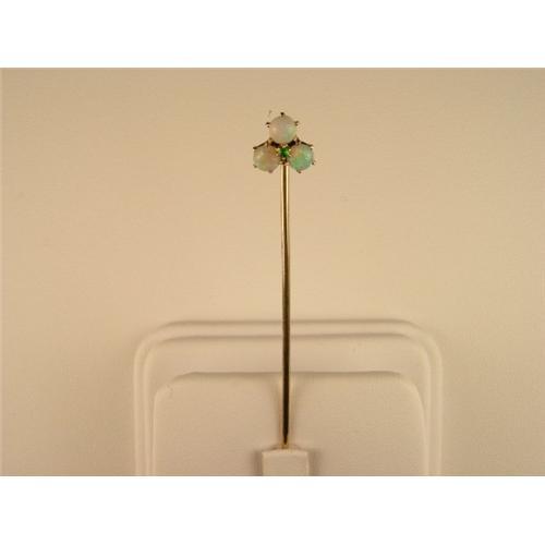 This ANTIQUE VICTORIAN STICKPIN is CIRCA 1890 AND it is in EXCELLENT CONDITION! It is 14k Yellow Gold and it features 3 Cabochon OPALS with a center EMERALD. The OPALS are in Fine condition and they all exhitbit a great deal of color. The Emerald is a wonderful Green color that is not too dark and not too light. This Circa 1890 ANTIQUE STICKPIN IS A REAL TREASURE IN SUPERB CONDITION!