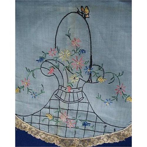 BEAUTIFUL VICTORIAN HAND EMBROIDERED PASTEL BLUE LINEN RUNNER SHOWING COLORFUL EMBROIDERED FLOWERS IN A BASKET, LOVE THE FINE CREAM COLOR LACE AT THE BORDER,as per pictures, EXQUISITE! EXCELLENT CONDITION, MEASURES ABOUT 41 1/2" X 14 1/2" - US BUYER TO PAY 4.00 FOR SHIPPING PLUS INSURANCE.THANKS.