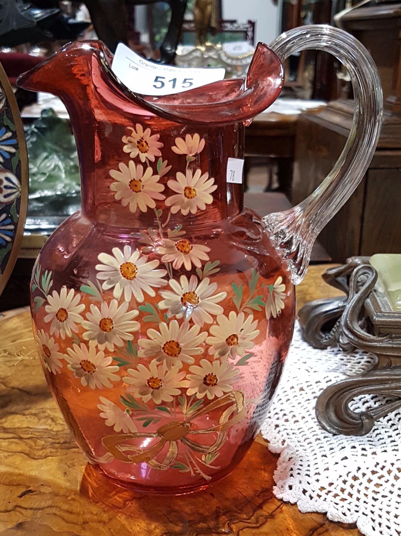 VICTORIAN HAND PAINTED CRANBERRY GLASS PITCHER