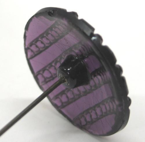 LADIES’ VICTORIAN HAT PIN. Decorated at top with large purple colored stone. 9.75” L