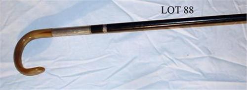 LA BRIERE", BONE HOOK HANDLE, EBONY & WHITE METAL STEM, 35 ½" L, WEIGHING 1 LB.