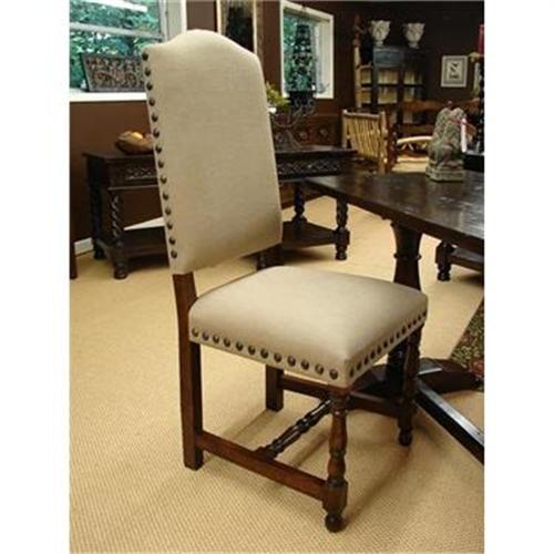 NOTHING COULD SET A ROOM OFF MORE THAN A SET OF THESE CHAIRS. WE HAVE AS MANY AS 10, AND SOME ARM CHAIRS, ALSO...EMAIL US FOR DETAILS. BUT YOU ARE BIDDING ON ONE CHAIR ONLY. A VERY CLASSIC TAILOR MADE DESIGNER CHAIR DRESSED IN A HEAVY LINEN UPHOLSTERY WITH LARGER PEWTER STUDDING TRIMMED THROUGHTOUT. THIS IS A HIGH END FABULOUS CHAIR AND WILL OUTLAST ANY ON THE MARKET. USE AS A DESK OR ACCENT CHAIR OR BUY THE SET FOR YOUR DINING ROOM!EMAIL FOR AVAILABILITY.