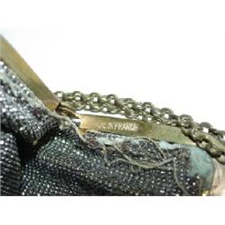 VICTORIAN LADIES’ PURSE. Marked “Made in France” on inside of top clasp. Colorful beaded silver, red, blue, and green decoration. Mesh has been reattached to clasp in some areas.