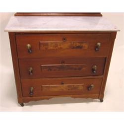 Victorian marble top 3 drawer chest with mirror back. White marble top. Good overall condition. Tear drop pulls. Dovetailed drawers. 74" H, 37" W, 17" D