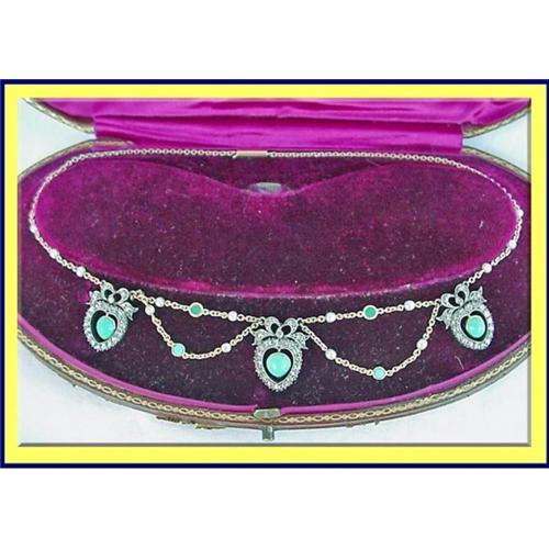 <tr><td>Title:VICTORIAN NECKLACE DIAMOND GOLD TURQUOISE PEARL</td></tr>