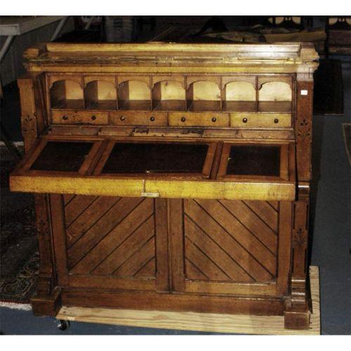 VICTORIAN OAK MERCHANT'S DESK, probably Philadelphia, circa 1885, CONDITION REPORT: no damage or restoration, normal finish wear.