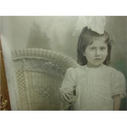 VICTORIAN ORNATE GILT DECORATED FRAME with photograph of young girl. 21.5" x 25.25" framed.