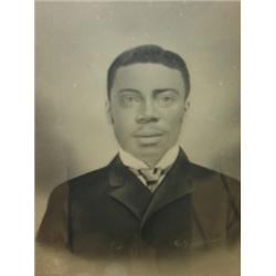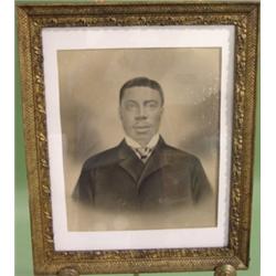 VICTORIAN ORNATE GILT DECORATED FRAME with photograph of African-American gentleman. 19" x 23.25" framed.