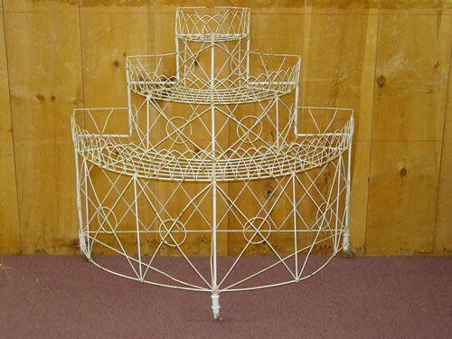 VICTORIAN PAINTED WIRE 3 TIER FERNERY ON CASTORS - PAINT WEAR & LOSSES