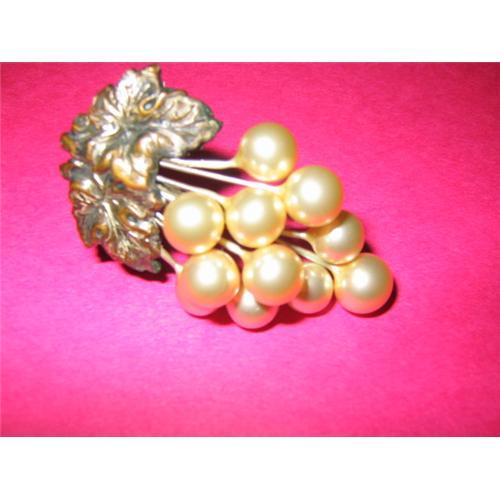 THIS IS A VERY FINE EXAMPLE OF VICTORIAN JEWERLY, SHAPED IN THE FASHION OF A GRAPE CLUSTER, WITH LEAFS ON THE TOP, IT IS FOR A LADIE TO WEAR ON HER LAPEL CLIPS ON NOT STERLING, HAS A SIGNITURE BUT CAN NOT MAKE IT OUT