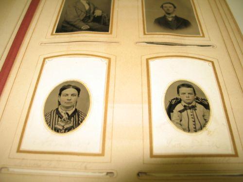 VICTORIAN PICTURE ALBUM. Consists of Victorian pictures and tintypes. Includes some pictures of members of the United States Navy. Velvet cover.