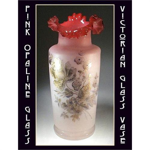 <tr><td>Title:VICTORIAN PINK OPALINE GLASS VASE GL14</td></tr>