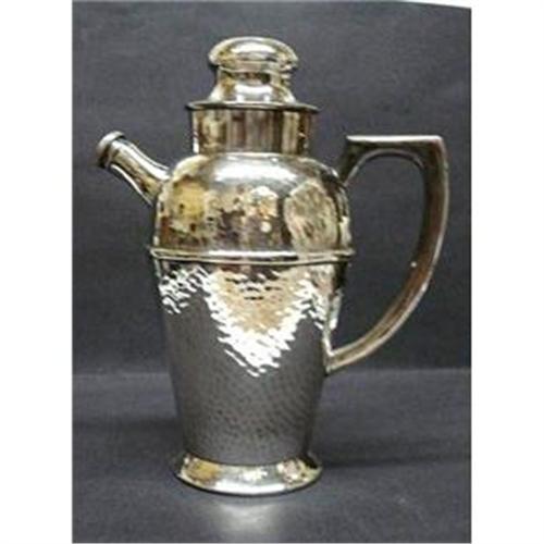BEAUTIFUL HAMMERED SILVER, PLATED, REAL, COCKTAIL SHAKER - ORIGINAL AND COMPLETE, NO PARTS MISSING, INSIDE NICE AND CLEAN AND PERFECTLY USABLE, ON OUTSIDE, LOVELY, POLISHED AND SHINY, EXCELLENT CONDITION BUT FOR ONE DENT ON THE CAP AND ONE LOCATED NEXT TO HANDLE, THESE CAN BE "IRONED OUT" BY A SILVER SMITH, IF IT IS BOTHER YOU, TO ME IT IS NOT THAT VISIBLE DUE TO HAMMERED PATTERN ON THE SHAKER AND SECONDLY IT ADDS TO THE CHARACTER OF ANTIQUE PIECE LIKE THIS ONE,OTHER THAN THAT PERFECT, IT STANDS 10" HIGH, US Buyer to pay 9.00 (heavy) for shipping plus insurance.THANKS.
