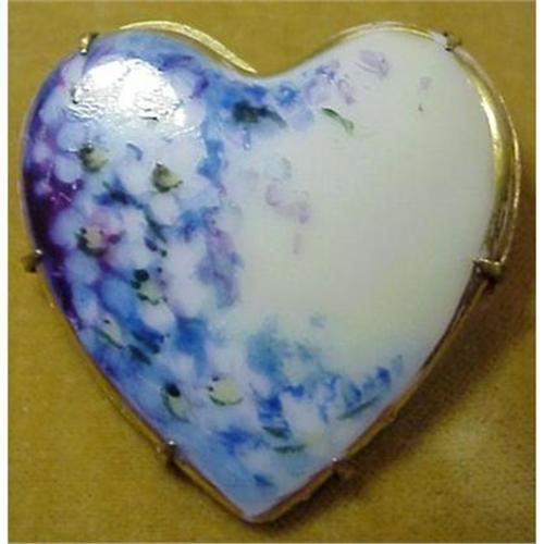 Lovely antique porcelain brooch, Hand painted and wonderful heart shape to display beatiful forget-me-not blossoms, The back is reinforced with brass looking metal, It seems to be in excellent condition, Ready to wear.1.5" x 1.5"- US Buyer please pay 7.00 for shipping plus insurance.Thanks.