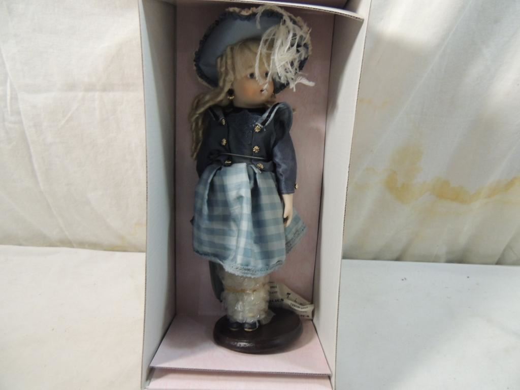COLLECTIBLE DOLL, DESIGNER DOLL, GREAT CONDITION, FROM PRIVATE DOLL COLLECTION, IN ORIGINAL BOX, UNIQUE DOLL, AS SHOWN SEE PHOTO FOR MORE DETAILS.