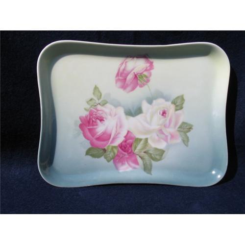 HERE IS A GORGEOUS HAND PAINTED ARTIST SIGNED BAVARIAN DRESSER TRAY. THE ROSES ARE UNBELIEVABLY LIFE LIKE AND BEAUTIFUL! THE ARTIST NAME IS "CARPENTIER" AND THE TRAY MEASURES 10" BY 7". THERE ARE NO CHIPS CRACKS HAIRLINES OR REPAIRS. UNDERSTAMP IS: EMPIRE Z.S & CO BAVARIA. THERE IS ONLY A VERY MINIMAL AND BARELY NOTICABLE AMOUNT OF WEAR ON THE EDGE DUE TO USAGE. IT IS IN VERY GOOD CONDITION AND MAKES A STRIKINGLY ELEGANT DECORATIVE PIECE!