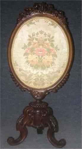 VICTORIAN ROSEWOOD ROCOCO FIRE SCREEN with tapestry, attributed to Belter height: 42",width: 19" original finish