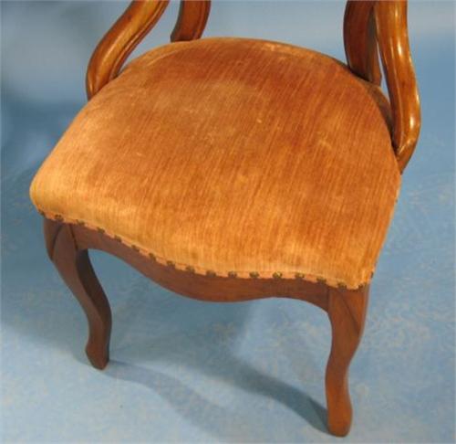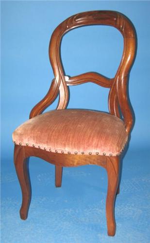 VICTORIAN WALNUT FINGER CARVED SIDE CHAIR. Mauve upholstered seat. Good overall condition. 35” H to top of back, 18” W, 16.5” H to top of seat.